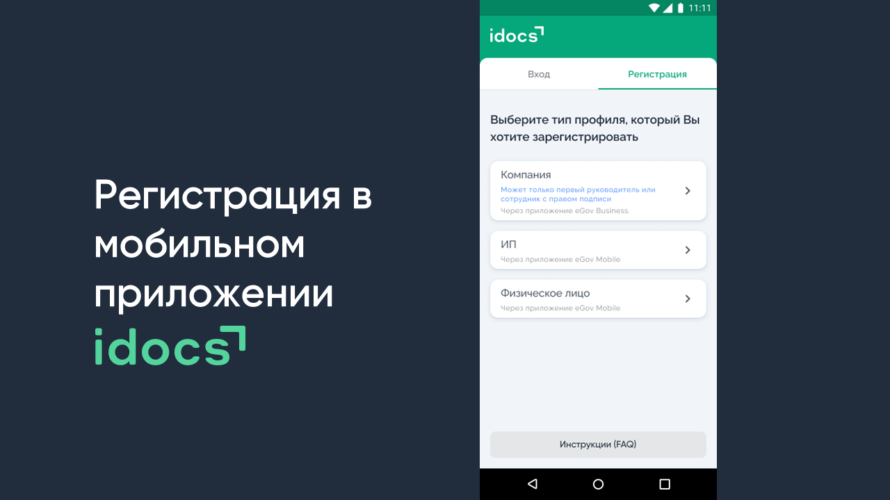 Регистрация в мобильном приложении idocs